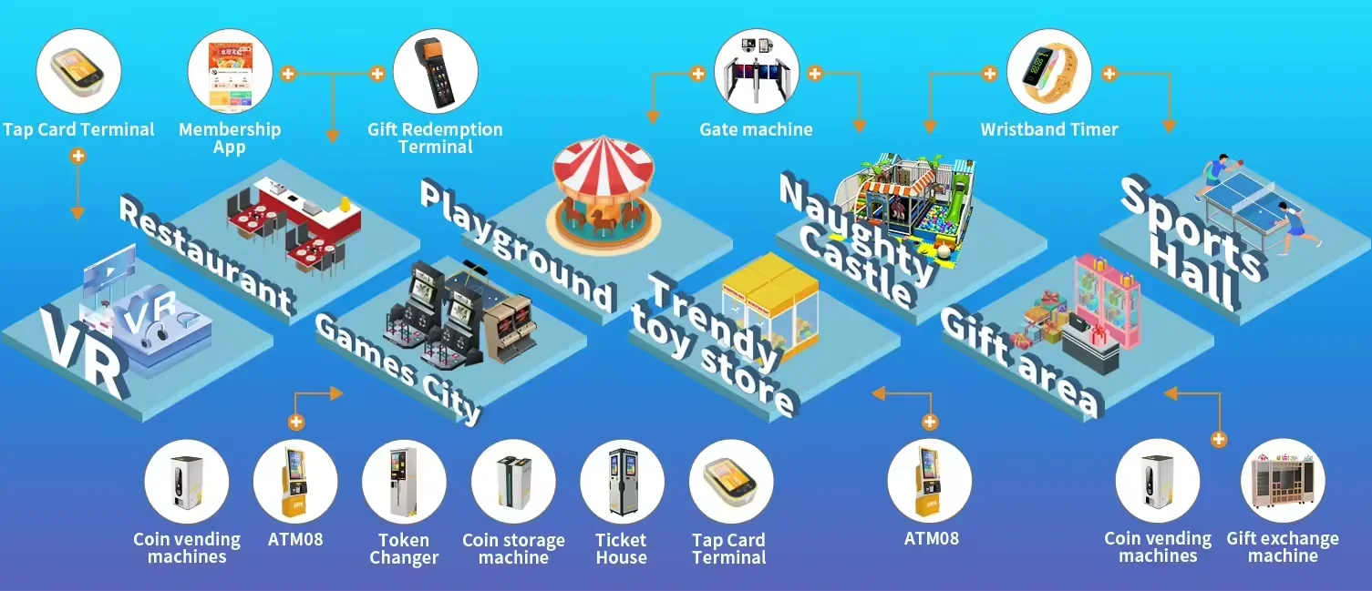 This software product is created to help playground owners easily manage, supervise, control, oberve, and take care of their amusement parks, arcade bars, and indoor playgound. The management system is user-friendly next generation of coin operated machines management system. It is professionally used to exchange among coins, tokens, credit, tickets, and cash. The system automatically collects all statistics data as freeback to administration. The system recodes the identification of each membership to authorize activatinig arcade machines, barrier turnstiles, gate locks and others.