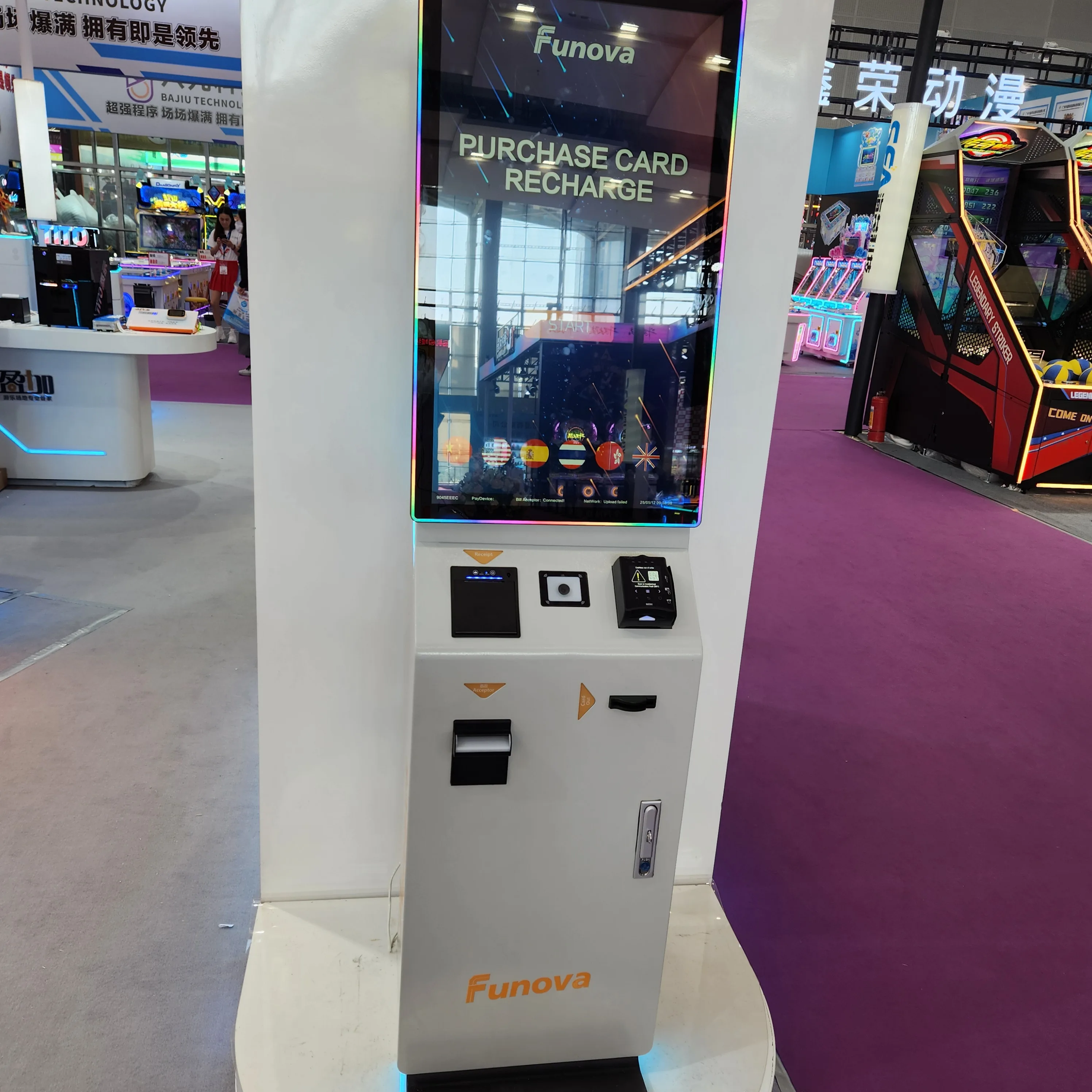 Máy bán hàng tự động Funova còn được gọi là máy phát hành thẻ thành viên/vé. Với màn hình cảm ứng 32 inch, kết nối không dây WIFI hoặc cáp mạng, khách hàng có thể thực hiện nhiều loại giao dịch chỉ bằng cách chạm ngón tay lên màn hình. Chủ yếu mua thẻ, vé thông qua máy POS, máy quét mã QR, máy nhận tiền giấy, đầu đọc thẻ thành viên và các phương thức thanh toán địa phương khác.